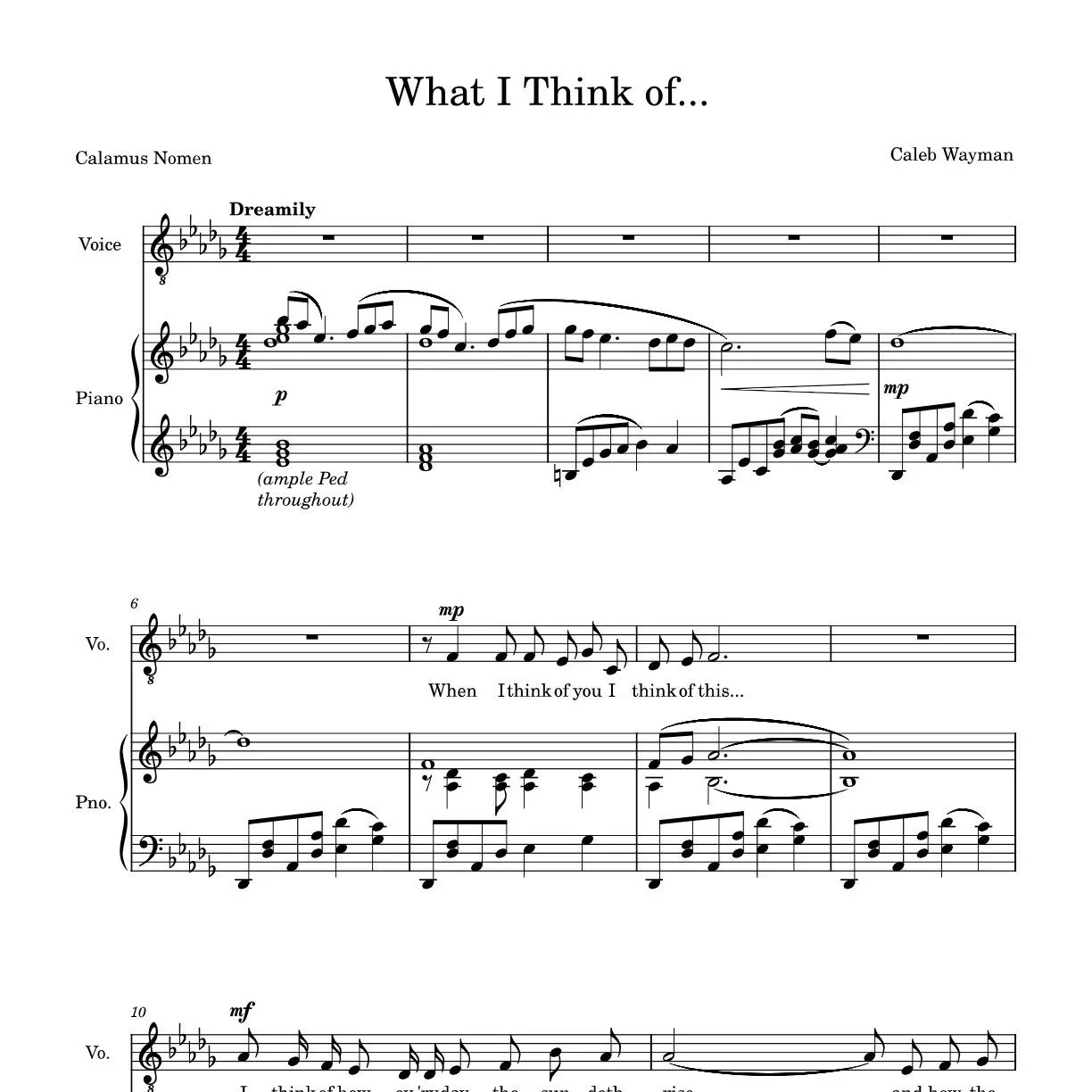 A simple love song for baritone (Ab2-Db4) and piano; telling the one you love all the wonders of the world around that pale in comparison to them.
